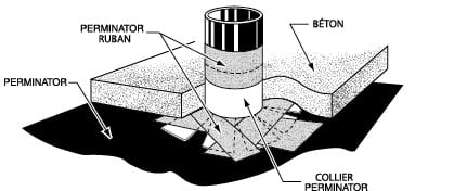 Scellement des saillies … Faire une entaille autour des tuyaux, conduits, barres d’armature et ouvertures pour fils électriques afin de placer la couche initiale de pare-vapeur. Pour protéger davantage la dalle de béton des sources d’humidité extérieures, prendre un morceau de retardateur de vapeur et le fixer autour de la saillie à l’aide d’un collier.