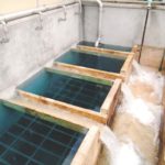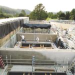 CEM-KOTE FLEX ST provided chemical resistance and rapid return to service for this seismic retrofit project to strengthen granular media filters in a drinking water treatment plant. The existing walls were thickened with an 8” layer of new reinforced concrete. CEM-KOTE FLEX ST was effectively applied by both spray and brush methods within seven days of concrete placement. The corner coves were created using MEADOW-CRETE GPS and reinforced with a strip of REINFORCING FABRIC HD and CEM-KOTE FLEX ST. Drying shrinkage cracks were treated with REINFORCING FABRIC HD. The ability to apply CEM-KOTE FLEX ST to green concrete was a huge time saver on this project and allowed these critical facilities to return to serve with a minimum of downtime.